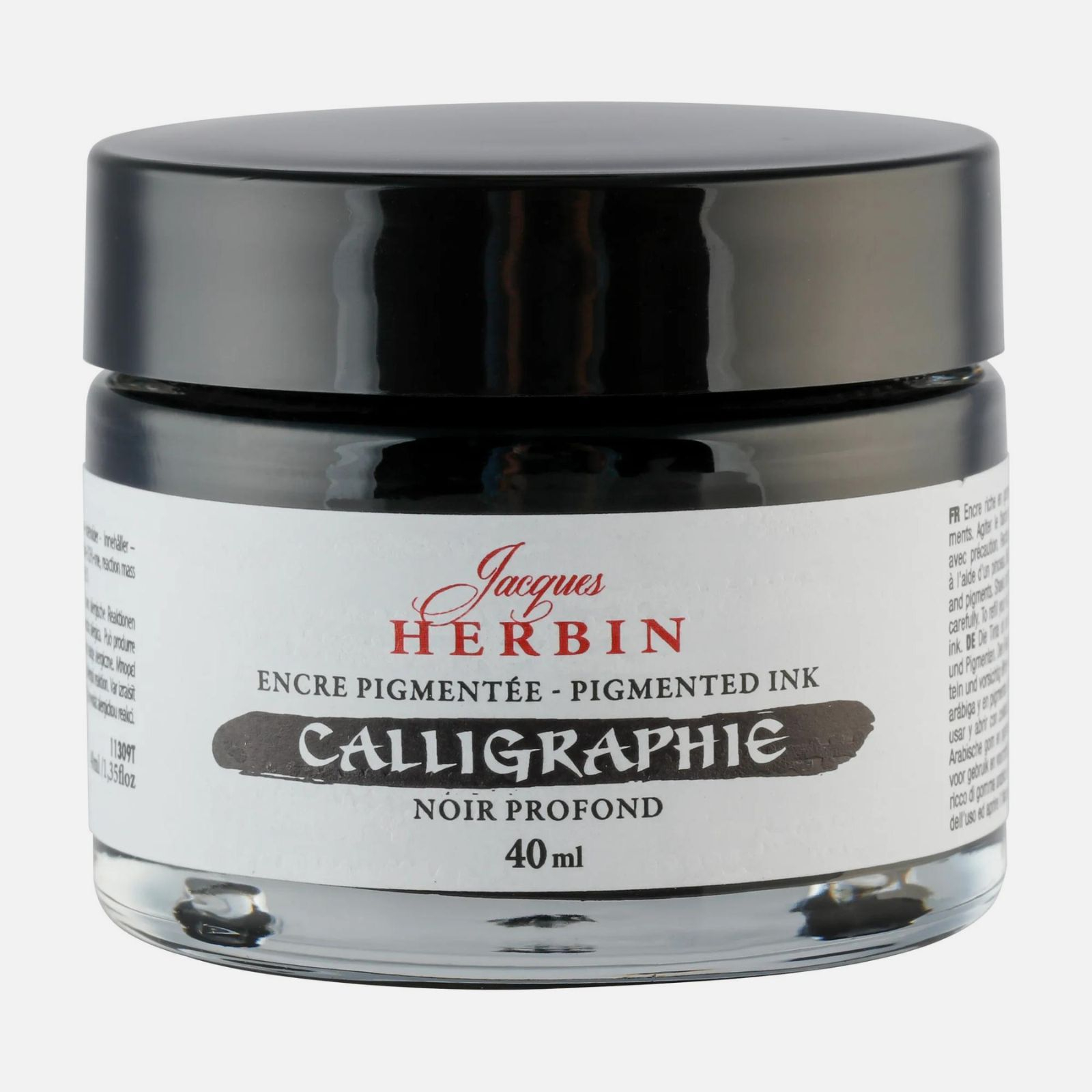 Gama de cerneluri pentru caligrafie Jacques Herbin, realizata din guma arabica (cu exceptia culorii albe) si pigmenti, are la baza o reteta traditionala utilizata de caligrafi.