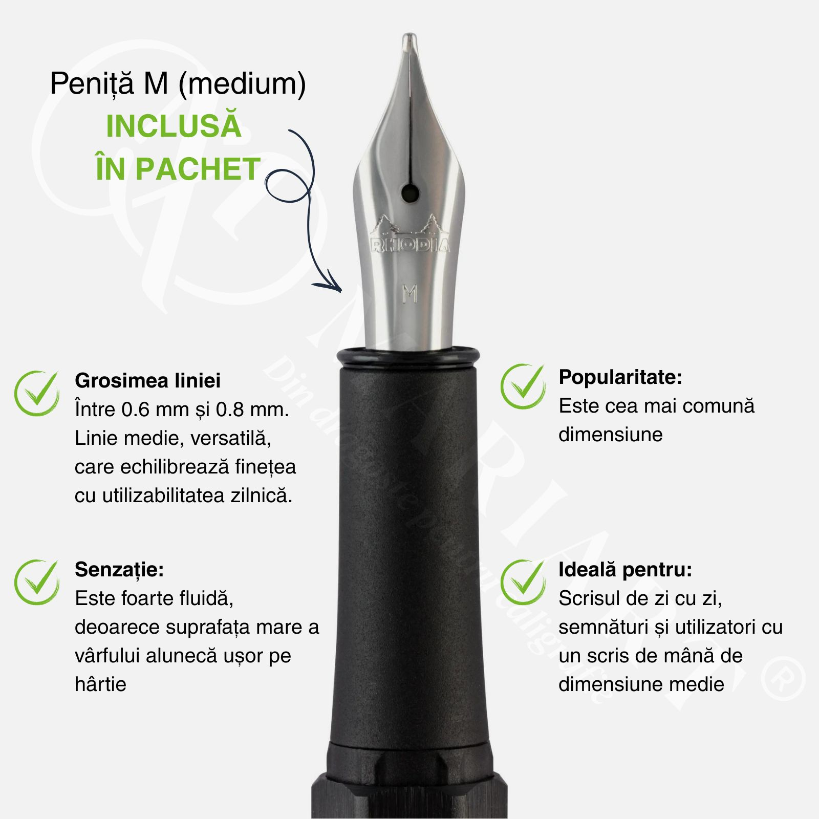 Penita sa din otel inoxidabil este calibrata pentru o scriere medie (M). Capacul este echipat cu detalii metalice finisate cu grija si un clip robust, care permite fixarea sigura in buzunar sau pe coperta caietului. Cu o greutate de doar 8 grame, acest stilou ofera o manevrabilitate incredibila, fiind o alegere excelenta atat pentru incepatori, cat si pentru entuziastii care apreciaza minimalismul francez.